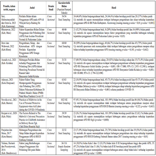Hubungan Pengetahuan Dan Sikap Bidan Terhadap Kepatuhan Penggunaan Alat Pelindung Diri Saat Persalinan : Systematic Review