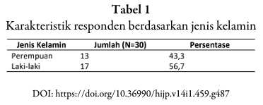 Tabel 1. Karakteristik responden berdasarkan jenis kelamin DOI: https://doi.org/10.36990/hijp.v14i1.459.g487